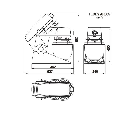 - 3 nástavce: šlehací metla s 2,5 mm nerez dráty, hák nerez, plochá